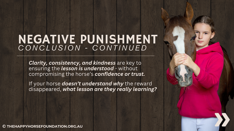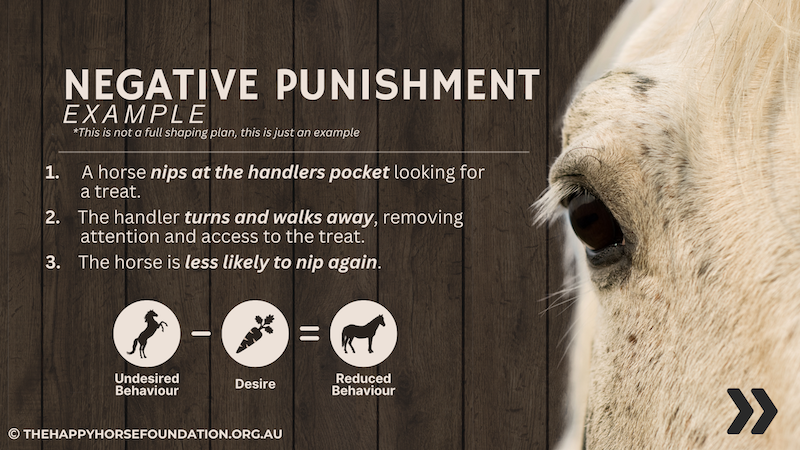 Here we are exploring the concept of Negative Punishment – where horses learn by losing access to something they value after an unwanted behaviour.