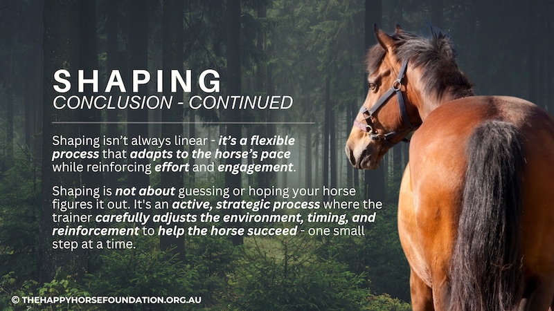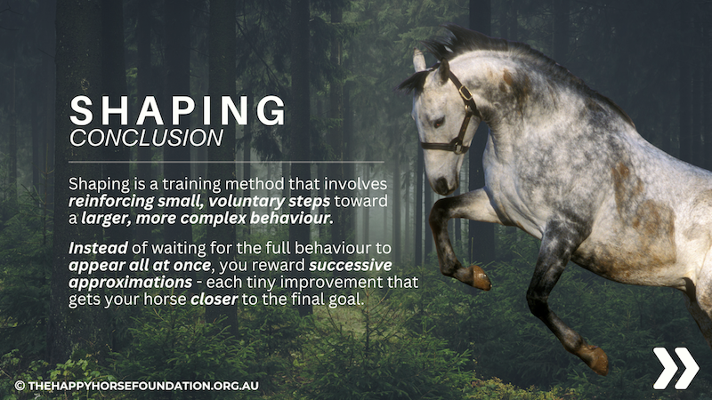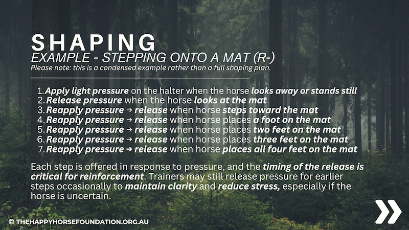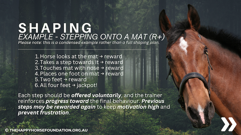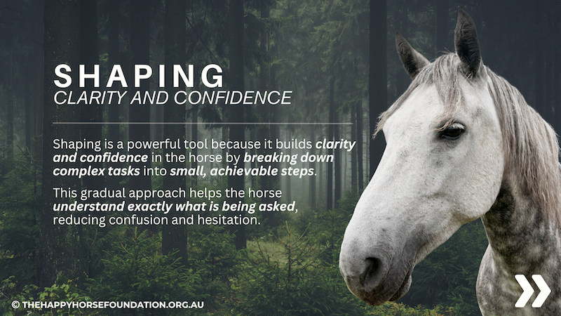 Here we are exploring the concept of Shaping – a training approach where horses learn through a series of small, voluntary steps, each reinforced as they move closer to the desired behaviour.